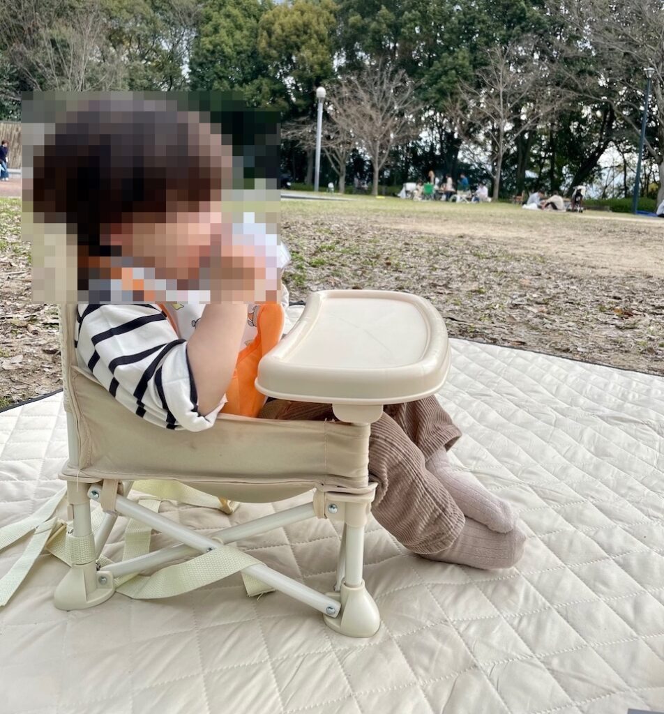 地面において使うことはもちろんですが、大人用のイスに紐で固定して使うことができるので実家に帰ったときなどとても役に立ちました。