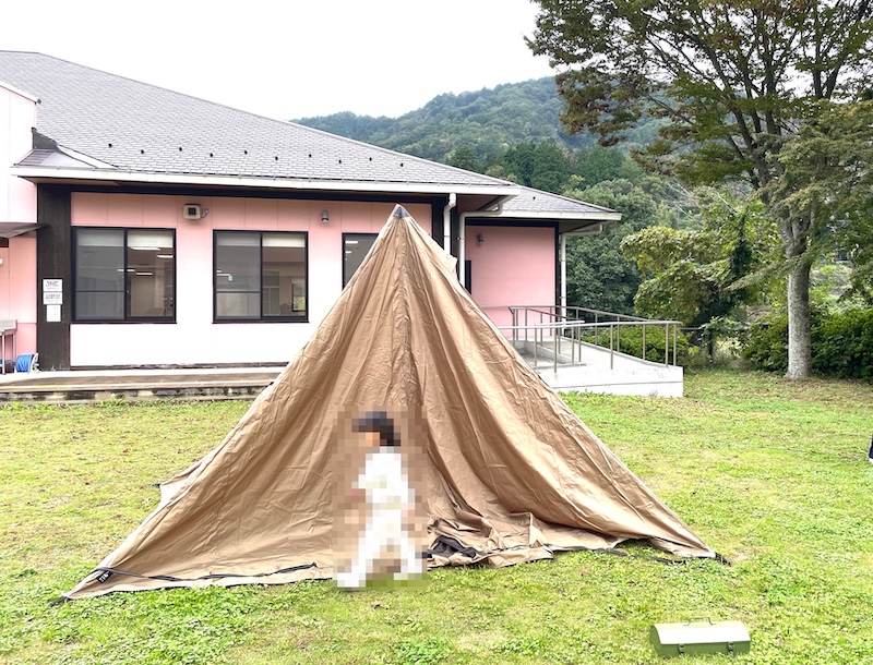 テントを立てているときの様子です。子どもと一緒に立てれるかという点については声掛けをしながらなら大丈夫だなと思いました。